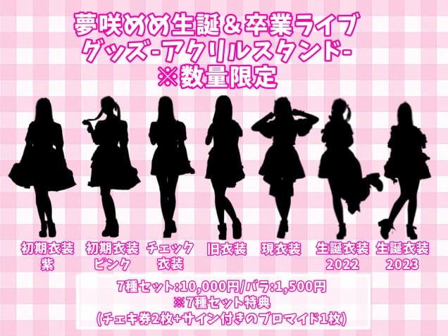 夢咲めめ歴代衣装でのアクリルスタンドを